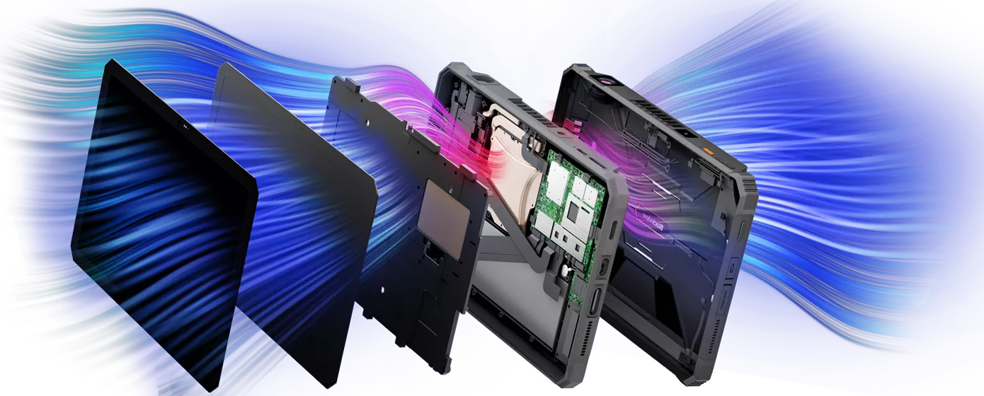 Інтелектуальна система охолодження планшета підтримує оптимальну температуру при максимальному навантаженні. Вона запобігає перегріву, зберігаючи стабільну роботу навіть в офісі, в дорозі або на вулиці, забезпечуючи плавність роботи і максимальну продуктивність.