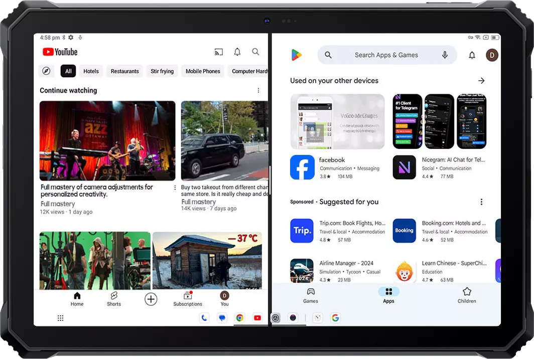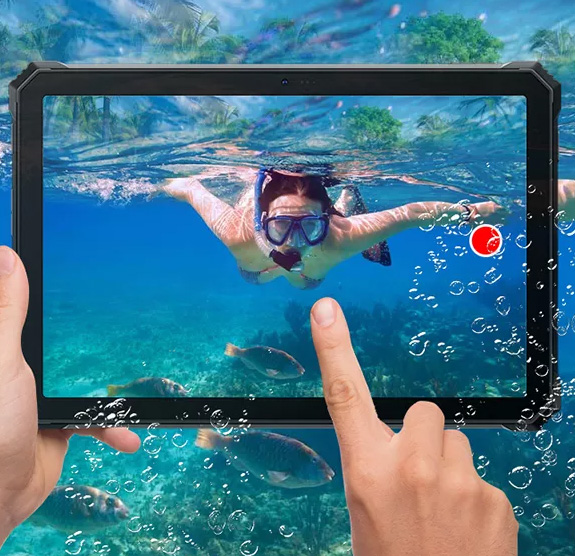Планшет оснащений спеціалізованою камерою для зйомки під водою, що дозволяє фіксувати події навіть під час занурення. Камера зберігає високу деталізацію, передачу кольору і чіткість зображення, розширюючи можливості для професійних і розважальних завдань в екстремальних умовах.