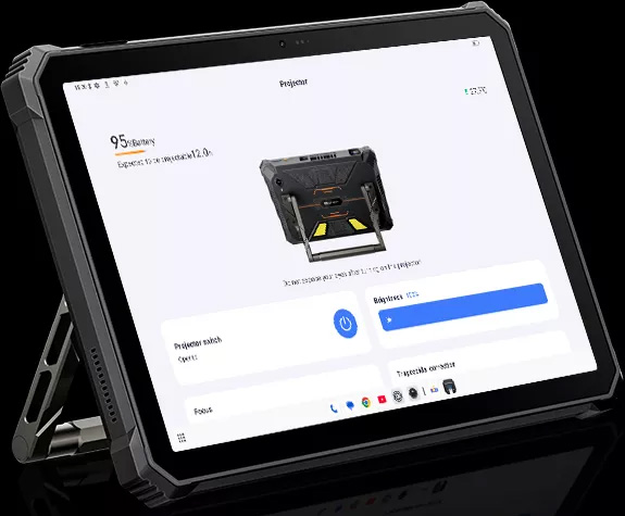 Active 12 Pro пропонує вбудований проектор з діагоналлю до 120 дюймів, забезпечуючи яскраве і деталізоване зображення. Це дозволяє проводити презентації, переглядати відео і влаштовувати кіновечори де завгодно. Проекція залишається чіткою навіть на нерівних поверхнях, перетворюючи планшет в універсальний пристрій для роботи і розваг.